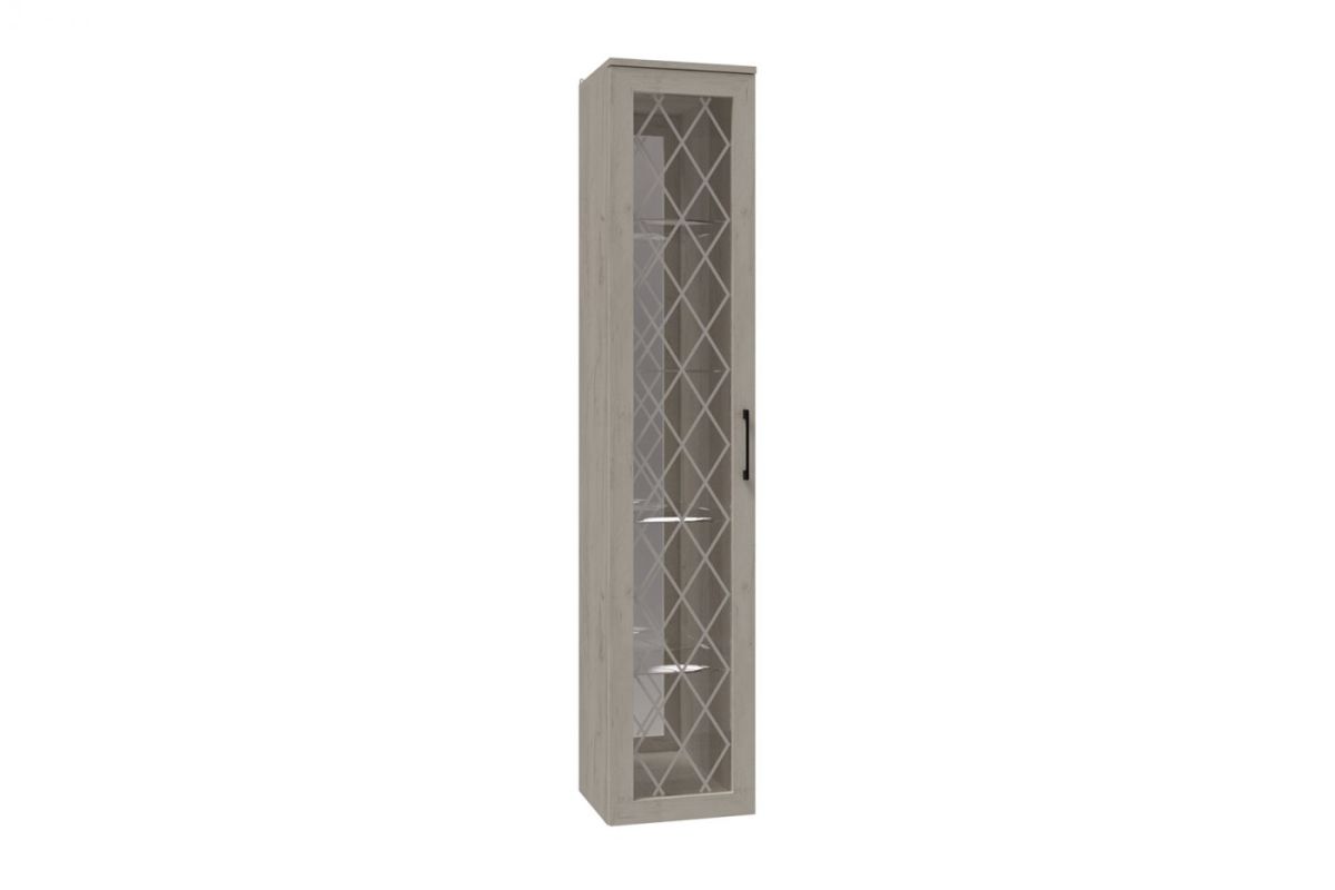 Фасадное стекло в витринах и полке навесной с гравировкой без полировки. В витринах стеклополки, на задних стенках зеркало.
