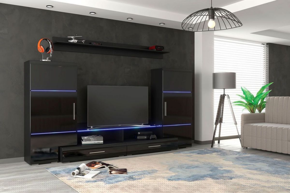 ДОМИНО Гостиная модульная (черный/черный глянец)