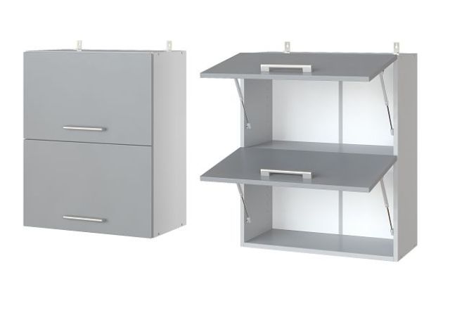 • все горизонтальные створки комплектуются двумя долговечными газлифтами «HAFELE» с индексом сопротивления 60-80N;