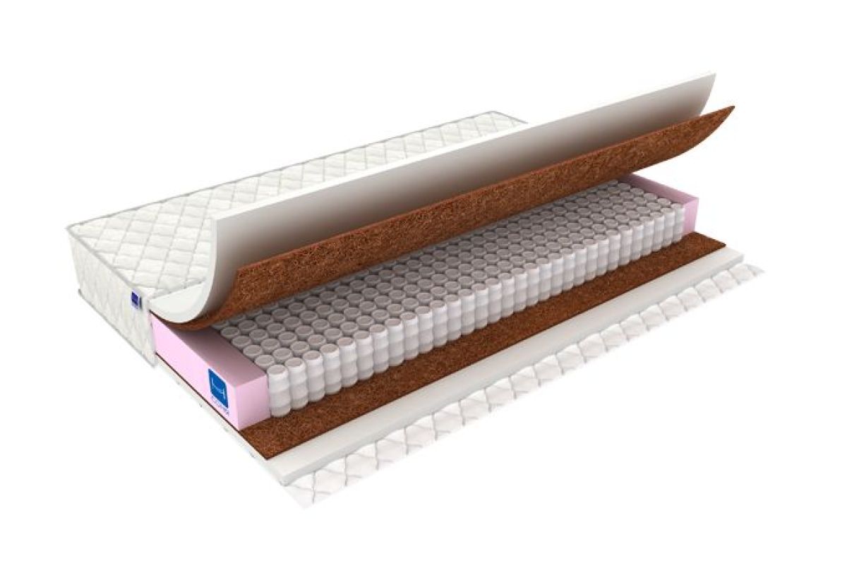 слой плотного латексированного кокосового волокна толщиной 10 мм – обеспечивает оптимальную поддержку позвоночнику, защищает мягкий наполнитель от воздействия пружин, не провоцирует аллергических реакций и обладает бактерицидными свойствами;
