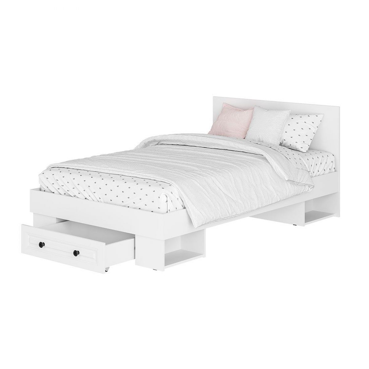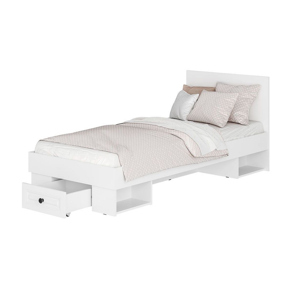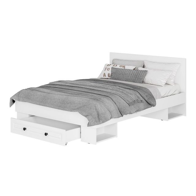 • В изножье кровати ящик входит в комплект.